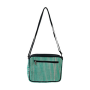 Product Details - Crafted using EcoKaari’s upcycled, handcrafted fabric made from waste plastic on the outside, paired with cotton fabric lining on the inside. Features include one inner open pocket, one inner zip pocket, one outer zip pocket, and an adjustable shoulder belt.