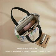 Product Description - Stay stylish on the go with the Upcycled Handcrafted eko Classic Tote Designer. Spacious enough to fit a 14" laptop, wallet, makeup pouch, a pair of shoes, and more, it's perfect for everyday routines or overnight stays. Designed with long cotton shoulder straps, it's your answer to effortless everyday carrying.