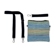 • Product Details: EcoKaari’s UPCYCLED-HANDCRAFTED fabric is made from waste plastic on the outside, cotton fabric lining on the inside, zipper on the outside, one small zipper pocket on the inside, and two detachable belts on the side to convert the pouch to a purse or sling bag!