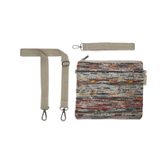 - Product Details: EcoKaari’s UPCYCLED-HANDCRAFTED fabric is made from waste plastic on the outside, cotton fabric lining on the inside, zipper on the outside, one small zipper pocket on the inside, and two detachable belts on the side to convert the pouch to a purse or sling bag!