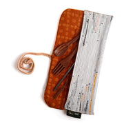 - Product Details: UPPCYCLED-HANDCRAFTED fabric is made from waste plastic on the outside, inside lined with Muslin and a Jute string to close the cutlery kit!