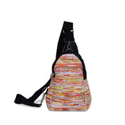 The UPCYCLED-HANDWOVEN eko Shoulder Crossbody Bag is a sleek, roomy bag. It is designed for comfort: it can be used as a chest pack and shoulder bag, messenger bag, or travel bag; Satchel strap is adjustable.